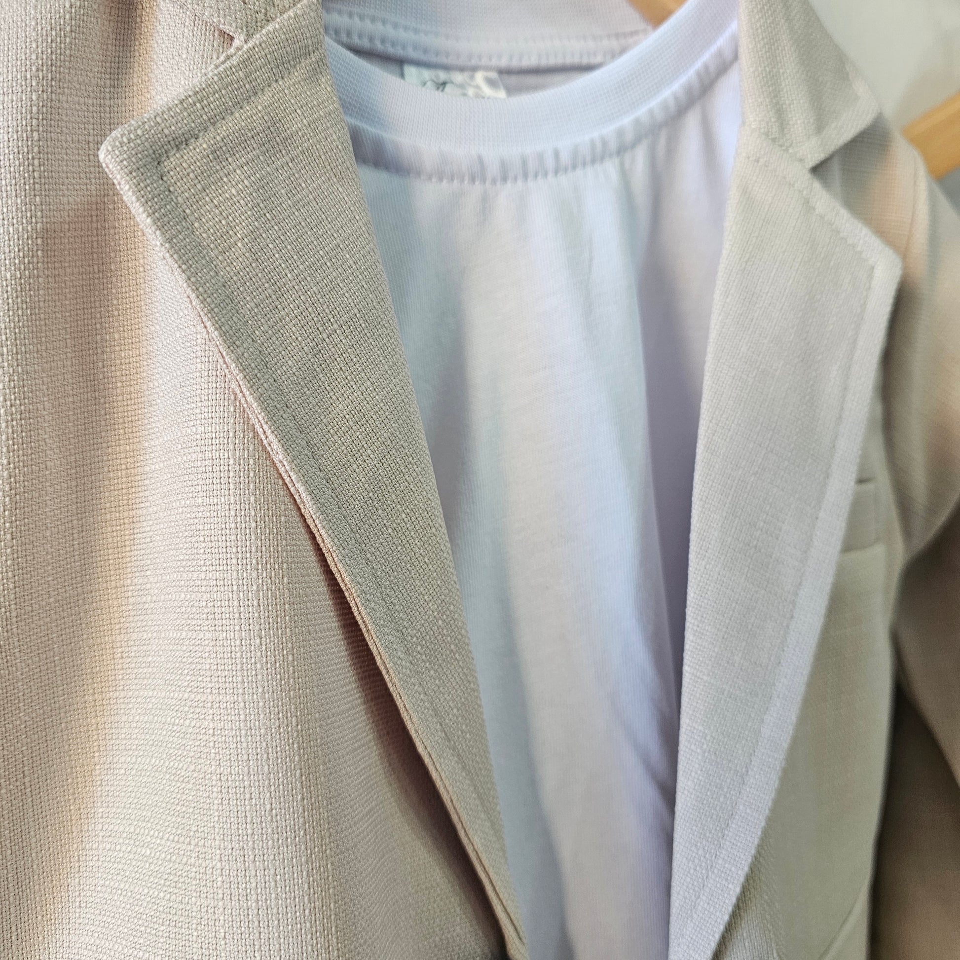 White T-shirt; pants & jacket